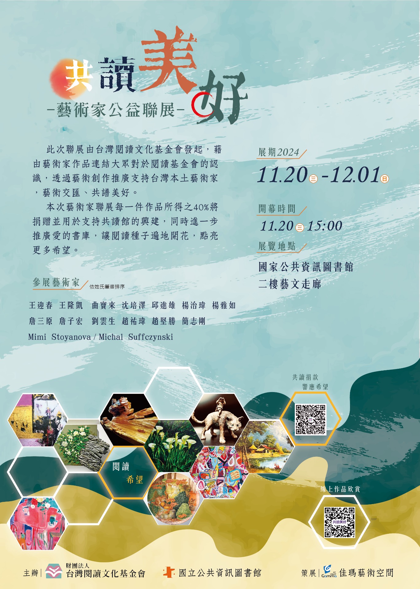 此次「共讀美好的藝術家聯展」不僅是一次藝術愛好者的盛會,也是一個讓社會大眾重新關注美好、放慢步伐的契機。無論你是藝術愛好者,還是初次接觸藝術的觀眾,都能在這場展覽中找到屬於自己的感動與啟發。誠邀大家一起來共讀藝術之美,共享這段難忘的時光。