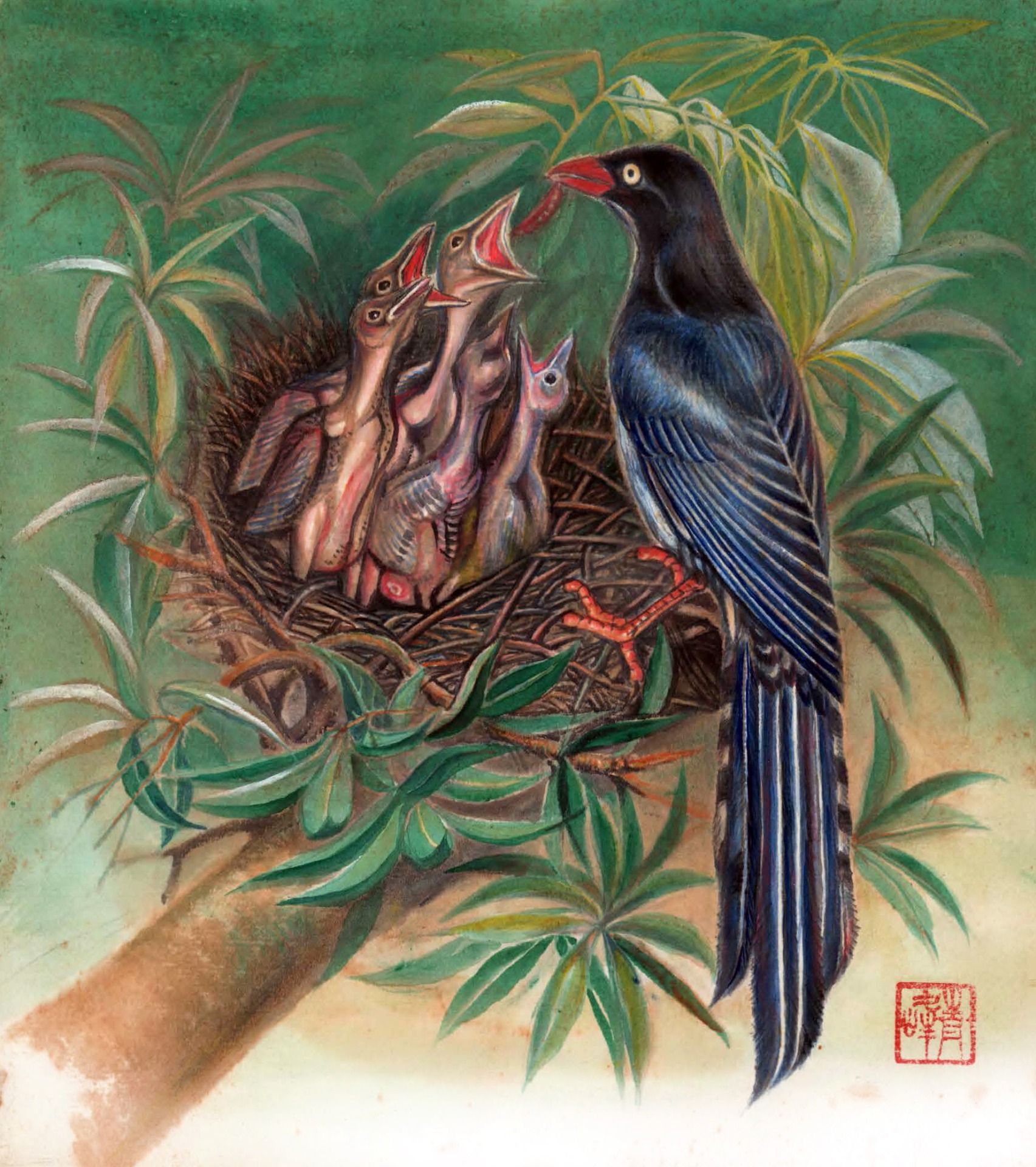 如同畫中的蓮葉撐起每一滴雨水,象徵堅實的肩膀承載著教育與文化的責任,春雨不語卻潤物無聲,這片池塘即是精神的沃土,孕育未來、照亮前行。